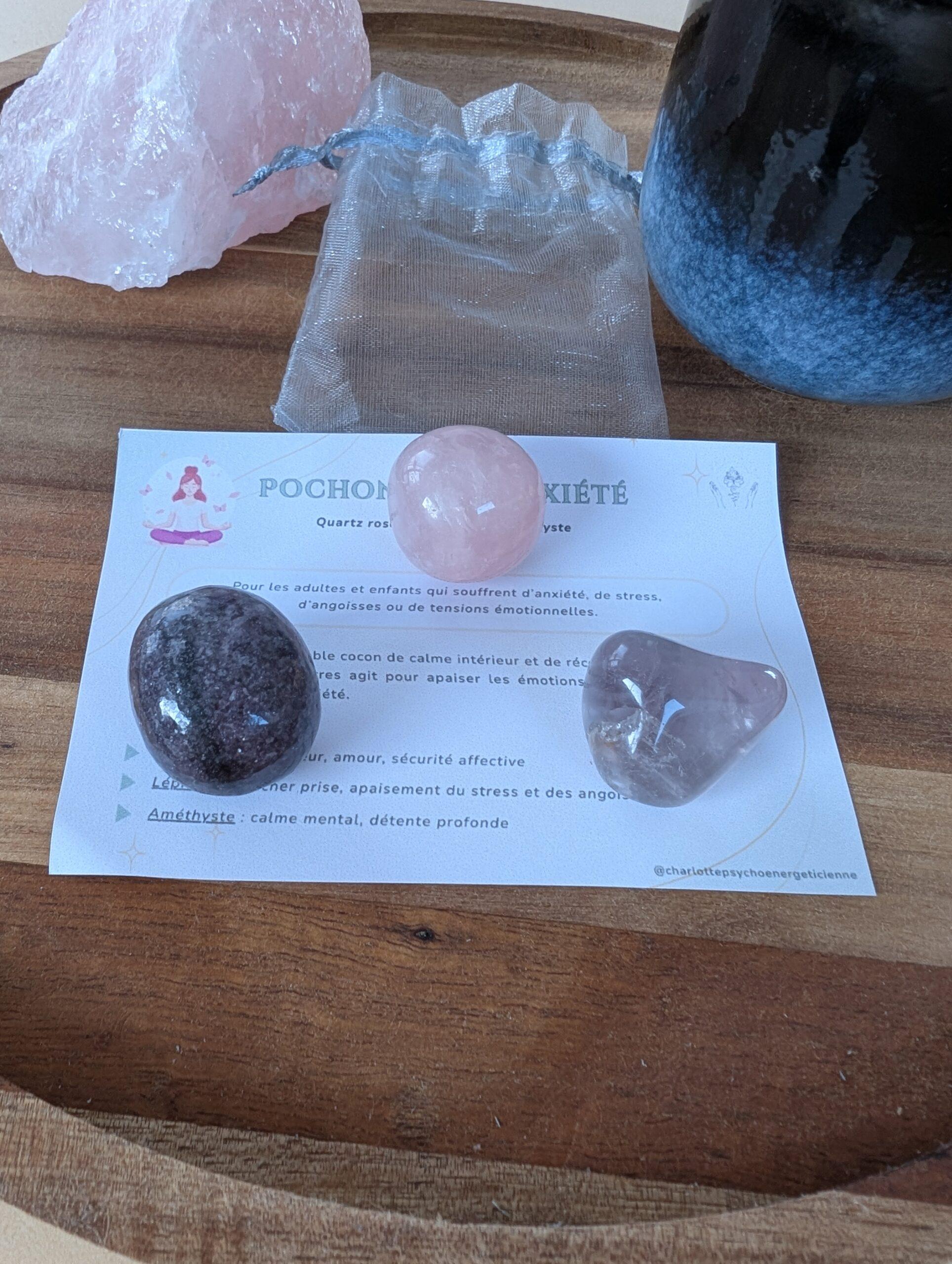 Quand l’anxiété prend trop de place, que le cœur s’emballe, que les peurs, les inquiétudes ou les tensions intérieures deviennent envahissantes, ce pochon a été imaginé pour apporter apaisement, réconfort et sécurité émotionnelle, en douceur 🤍