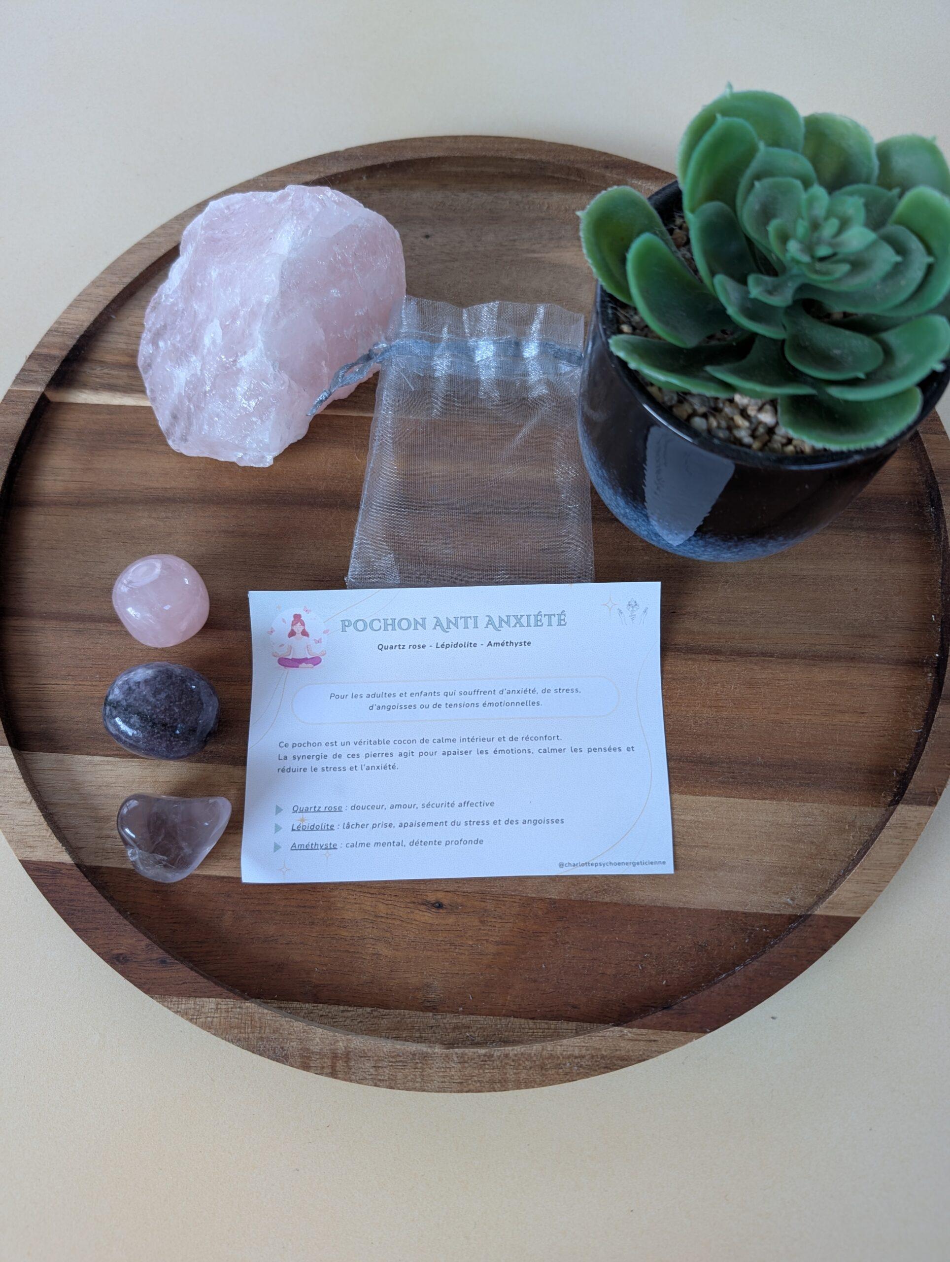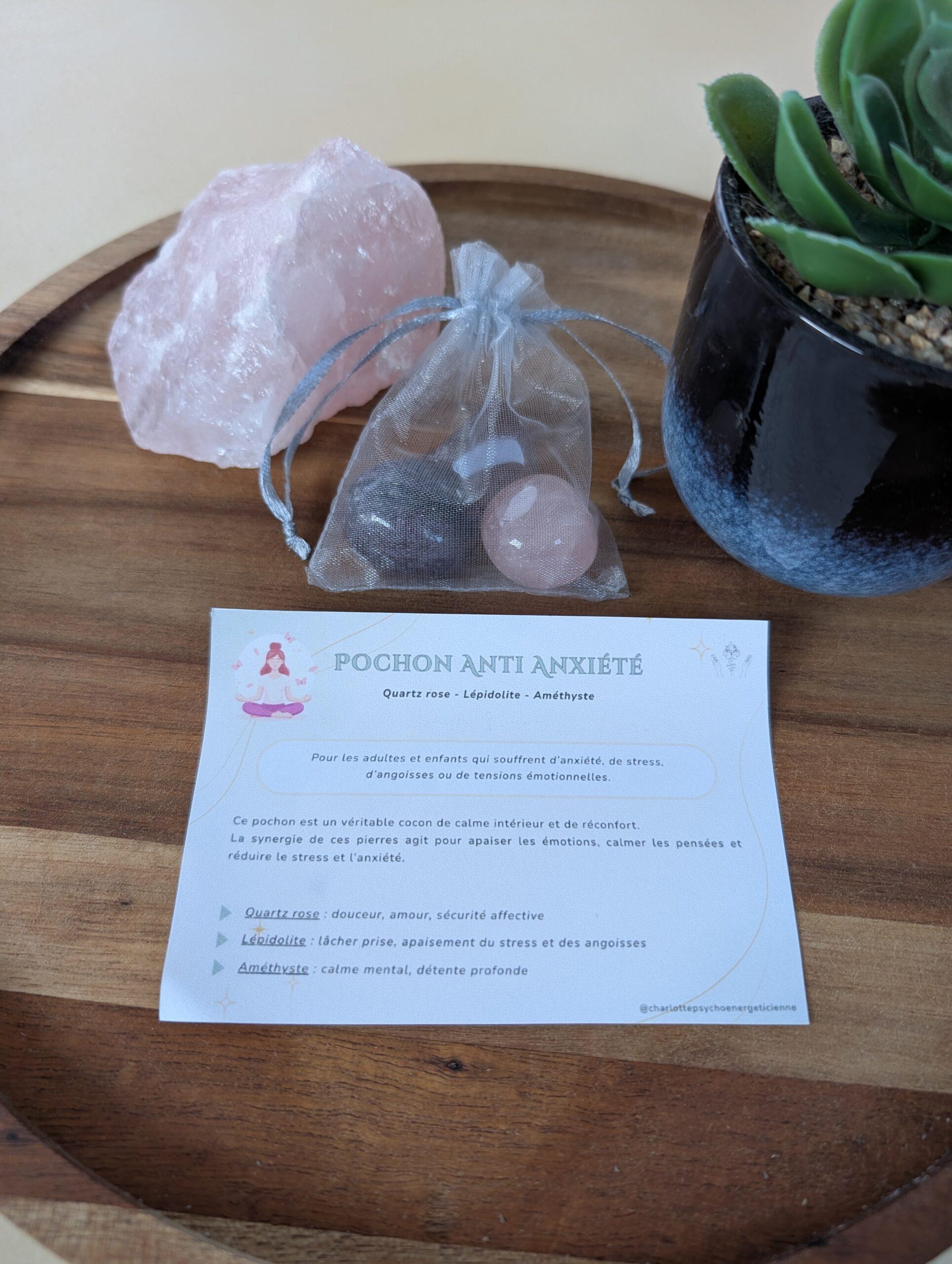 Conçu pour les enfants comme pour les adultes sensibles ou anxieux, le pochon anti anxiété accompagne le retour au calme, apaise le système émotionnel et aide à retrouver un sentiment de paix intérieure.